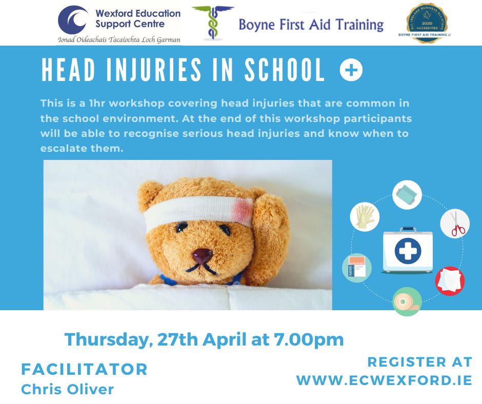 This is a 1hr workshop covering head injuries that are common in the school environment. At the end of this workshop participants will be able to recognise serious head injuries and know when to escalate them.