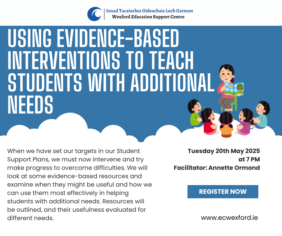 When we have set our targets in our Student Support Plans, we must now intervene and try make progress to overcome difficulties. We will look at some evidence-based resources and examine when they might be useful and how we can use them most effectively in helping students with additional needs. Resources will be outlined, and their usefulness evaluated for different needs.