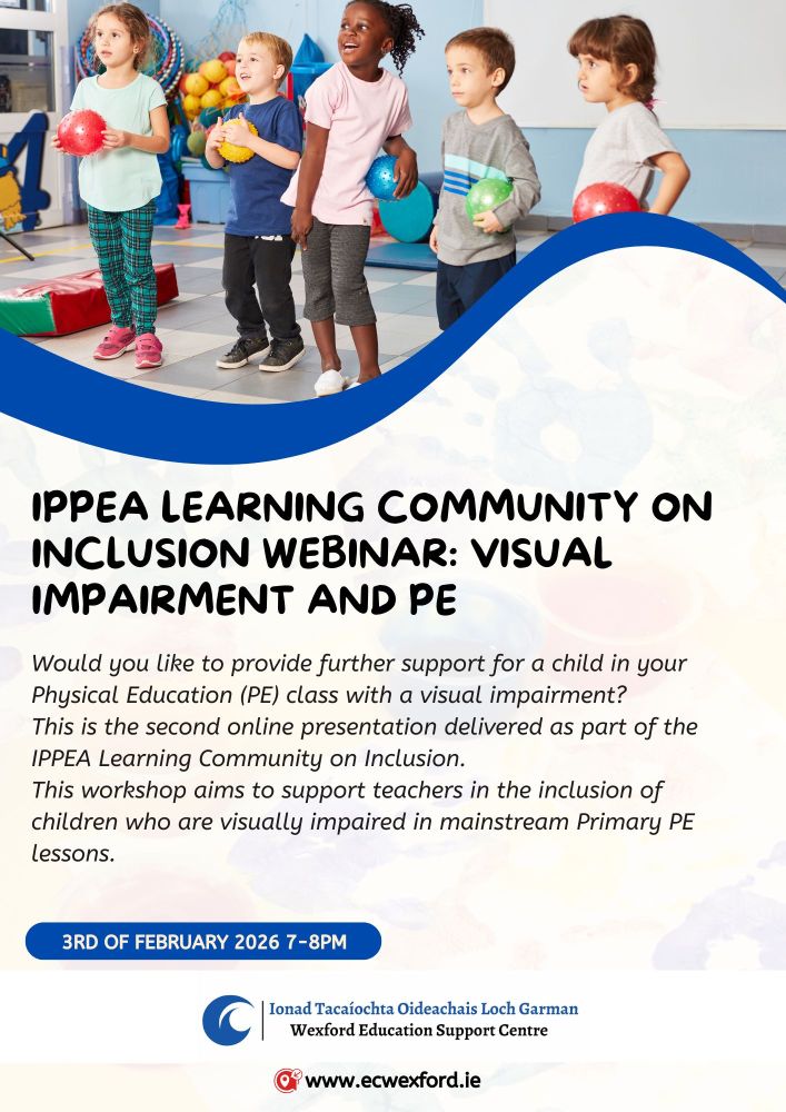 This webinar will be presented by Niamh Boylan. Niamh is a Primary school teacher working as the PE Teaching Assistant on the PE team in St. Patrick’s College, DCU this year. She is a current PhD student and her research focus is ‘Supporting Primary school teachers to include a child with a visual impairment in PE lessons. She is an Executive Committee member and the current Secretary to the Irish Primary PE Association (IPPEA).