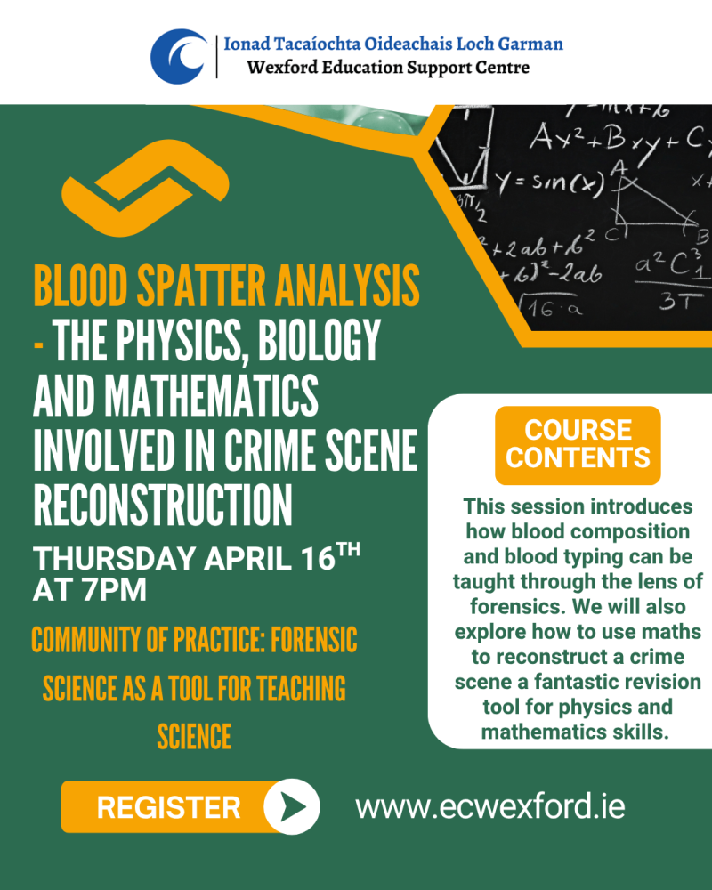 Explore blood spatter analysis to connect physics, biology, and maths. This session introduces how blood composition and blood typing xan be taught through the lens of forensics. We will also explore how to use maths to reconstruct a crime scene a fantastic revision tool for physics and mathematics skills.
