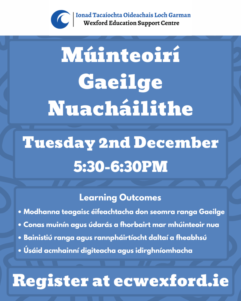 Cuirfear treoir phraiticiúil ar fáil do mhúinteoirí Gaeilge nuacháilithe chun muinín agus scileanna teagaisc a fhorbairt. Pléifear straitéisí éifeachtacha don seomra ranga, measúnú, agus rannpháirtíocht daltaí, le fócas ar chleachtas comhaimseartha agus ar acmhainní úsáideacha.