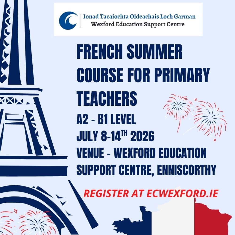 In September 2025, Modern Foreign Languages (MFL) were introduced as part of the updated Primary School Curriculum under the new language specification, alongside English and Irish. To support this development, Wexford Education Support Centre is offering primary teachers the opportunity to enhance their foreign language skills and earn 3 EPV days on completion of a 20-hour MFL Summer Course.